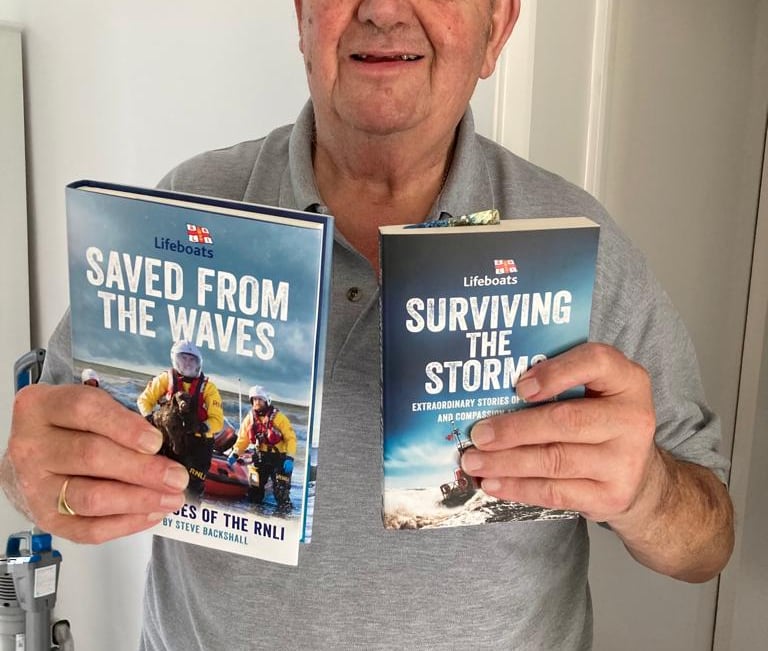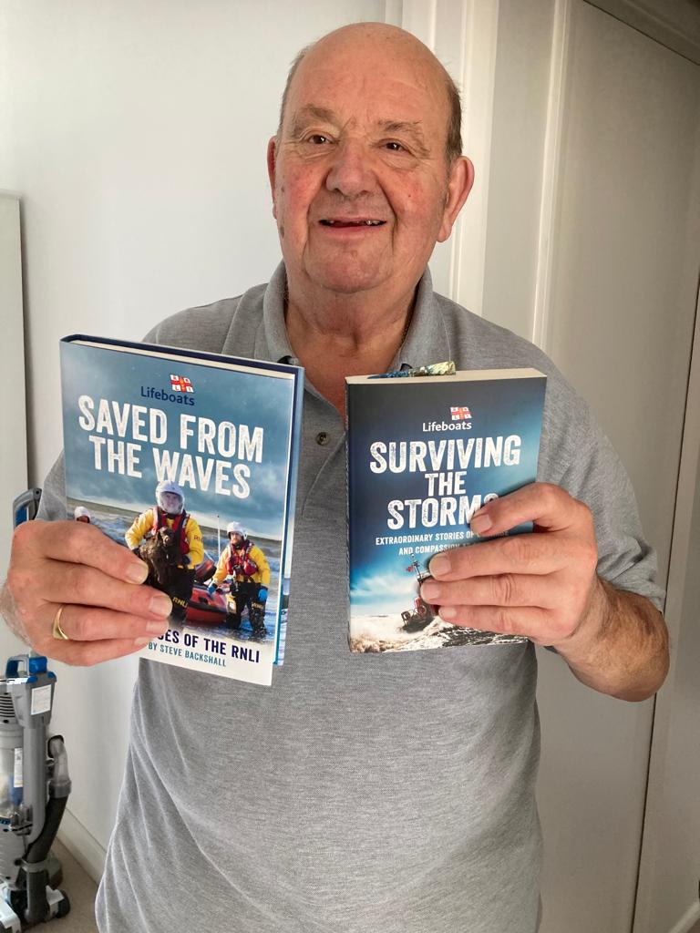 Denis, a volunteer for the last 41 years, was given two books recounting famed rescues by the RNLI and Coastguards - along with a small hamper - adding to previous medals/recognition from Poole HQ